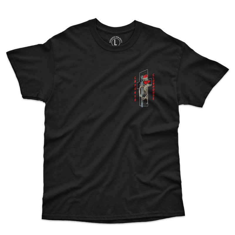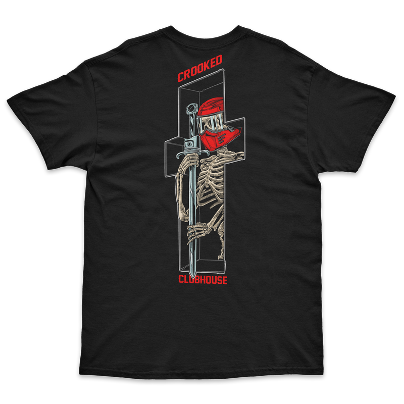 Introducing the CROSSED TEE from Crooked Clubhouse. Part of the 2024 Fall Collection featuring front and back artwork placements.