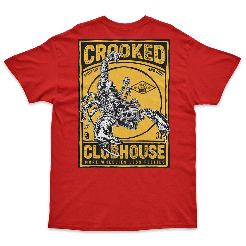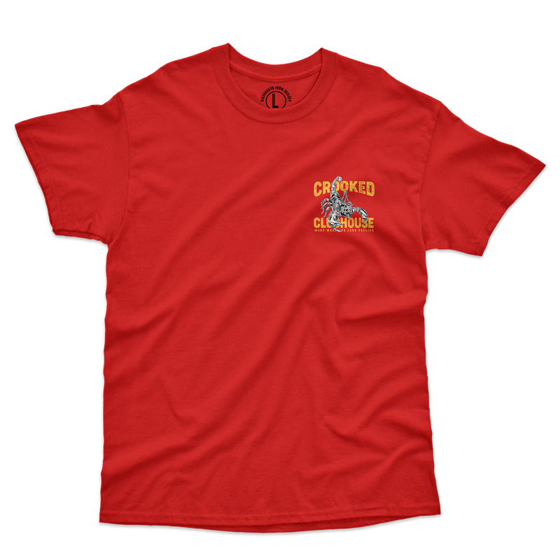 Designed by Crooked Clubhouse, the Scorpion Tee features placement of a scorpion graphic on both the front and back for a bold statement. Crafted with a classic crew neck and vibrant red color, this tee is sure to make a stylish impact.